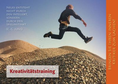 Kreativität zählt zu den wertvollsten Ressourcen bei der Erschließung neuer Wege auf beruflicher wie auf persönlicher Ebene. Sie ist eine unerlässliche Bedingung für jede Form von Veränderung und Innovation. Ziel des Kreativitätstrainings ist es, Kreativität, Improvisationsfähigkeit und Spontaneität zu fördern. Den größten Anteil des Trainings stellen praktische Übungen aus Improvisationstheater und Clown-Methodik dar, um Kreativität und Spontaneität erfahrbar zu machen. Diese werden mit Theorien aus Neurobiologie und Psychologie untermauert und in der Gruppe reflektiert sowie auf Berufs- und Alltagssituationen übertragen.